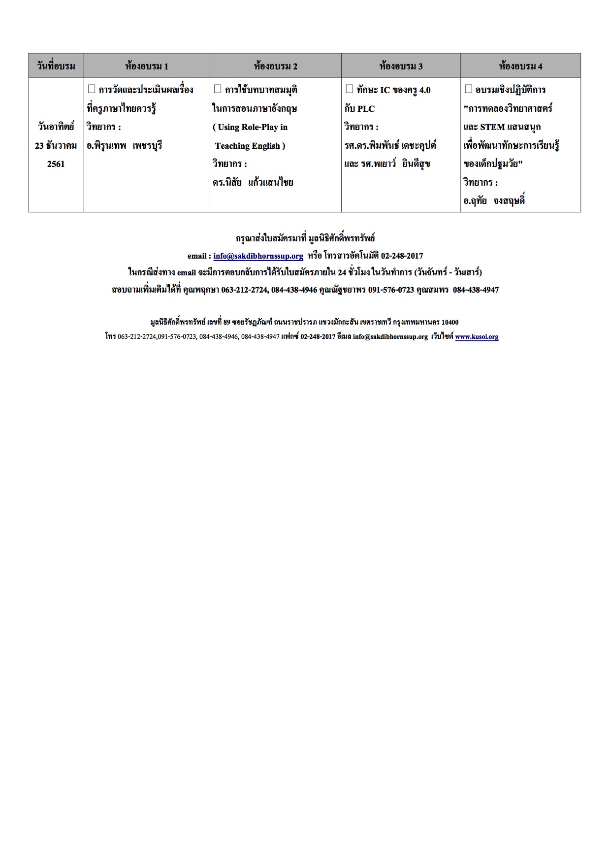 ดาวน์โหลดใบสมัคร เดือนกันยายน-ธันวาคม 2561