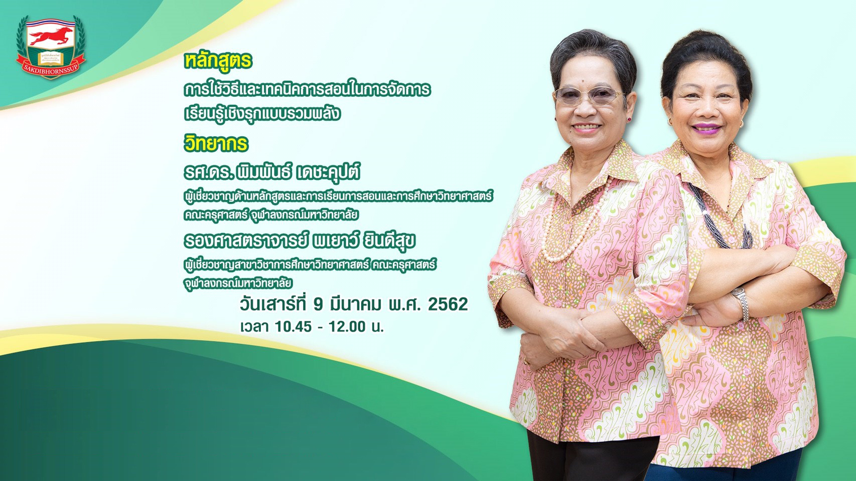 วันที่ 9-10 มีนาคม พ.ศ. 2562 เวลา 08.30-16.00 น.