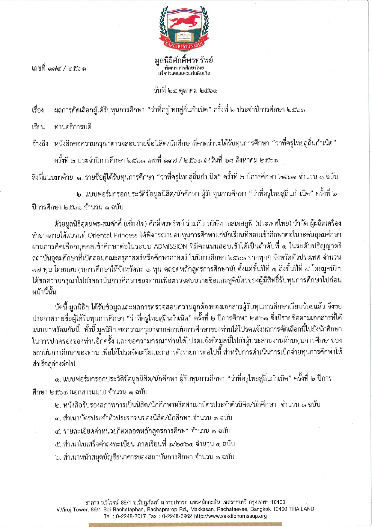 จดหมายแจ้งผลการคัดเลือกทุนการศึกษา_p001