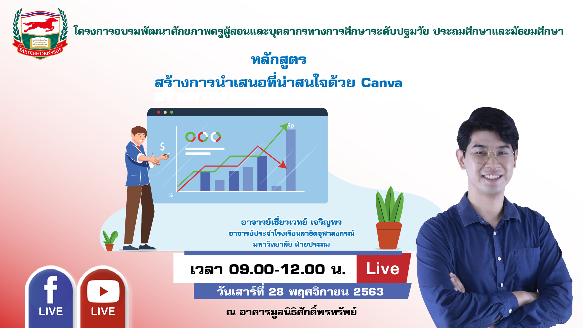 ข่าวประชาสัมพันธ์ ตรวจสอบรายชื่อผู้มีสิทธิ์เข้ารับการอบรม ประกาศรายชื่อผู้เข้าอบรมออนไลน์ : วันเสาร์ที่ 28 พฤศจิกายน 2563 เวลา 09.00-12.00 น. วิทยากร : อาจารย์เชี่ยวเวทย์ เจริญพร November 27, 2020 kusol admin วันเสาร์ที่ 28 พฤศจิกายน 2563 เวลา 09.00-12.00 น. หลักสูตร : “สร้างการนำเสนอที่น่าสนใจด้วย Canva” วิทยากร : อาจารย์เชี่ยวเวทย์ เจริญพร ดูรายชื่อ 👉 คลิก เข้าร่วมกลุ่มไลน์ 👉 คลิก หรือ Scan QR Code