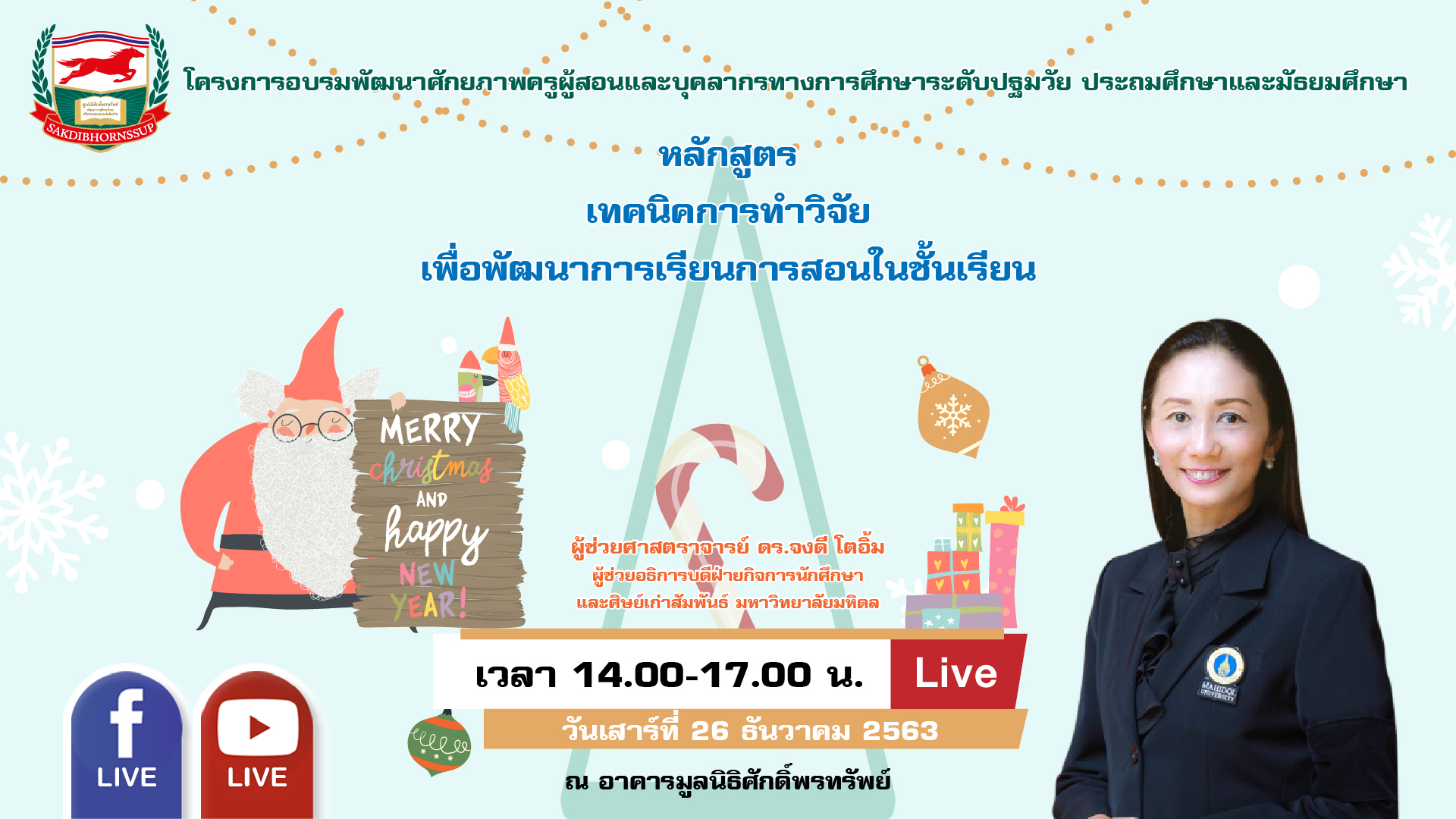 ประกาศรายชื่อผู้เข้าอบรมออนไลน์ : วันเสาร์ที่ 26 ธันวาคม 2563 เวลา 14.00-17.00 น. วิทยากร : ผศ. ดร.จงดี โตอิ้ม
