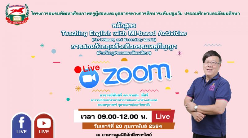 หลักสูตร : Teaching English with MI-based Activities (for Primary and Secondary Levels) การสอนอังกฤษด้วยกิจกรรมพหุปัญญา (สำหรับครูประถมและมัธยมศึกษา)