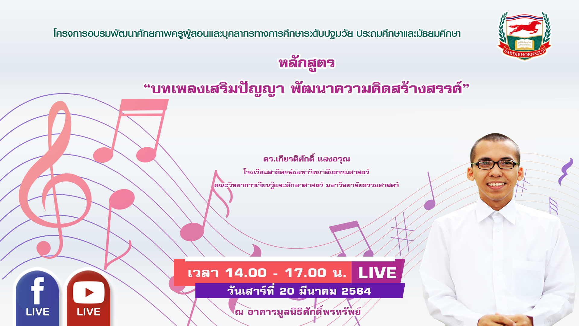 - ประกาศรายชื่อผู้เข้าอบรมออนไลน์ : วันเสาร์ที่ 20 มีนาคม 2564 เวลา 14.00-17.00 น. วิทยากร : อาจารย์ภณสมิทธิ์ ธัญสมิทธิโภคิน