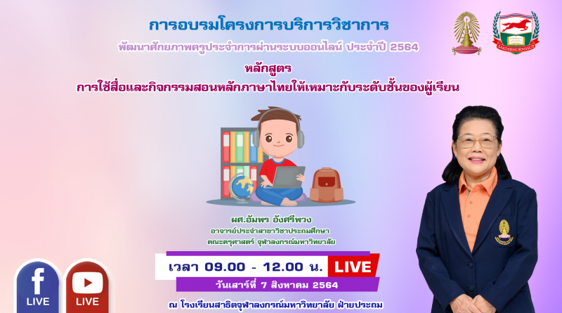 วันเสาร์ที่ 7 สิงหาคม 2564 เวลา 09.00-12.00 น.