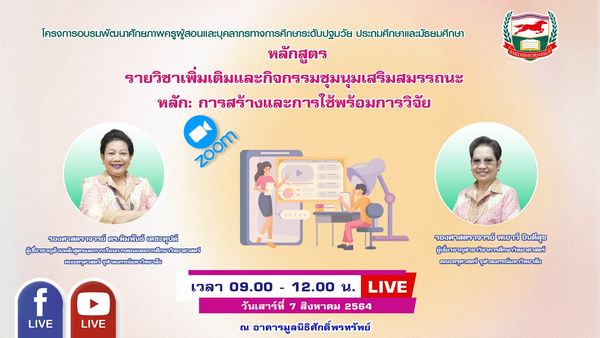 ประกาศรายชื่อผู้เข้าอบรมออนไลน์ : วันเสาร์ที่ 7 สิงหาคม 2564 เวลา 9.00-12.00 น. วิทยากร : รองศาสตราจารย์ดร.พิมพันธ์ เดชะคุปต์ รองศาสตราจารย์พเยาว์ ยินดีสุข