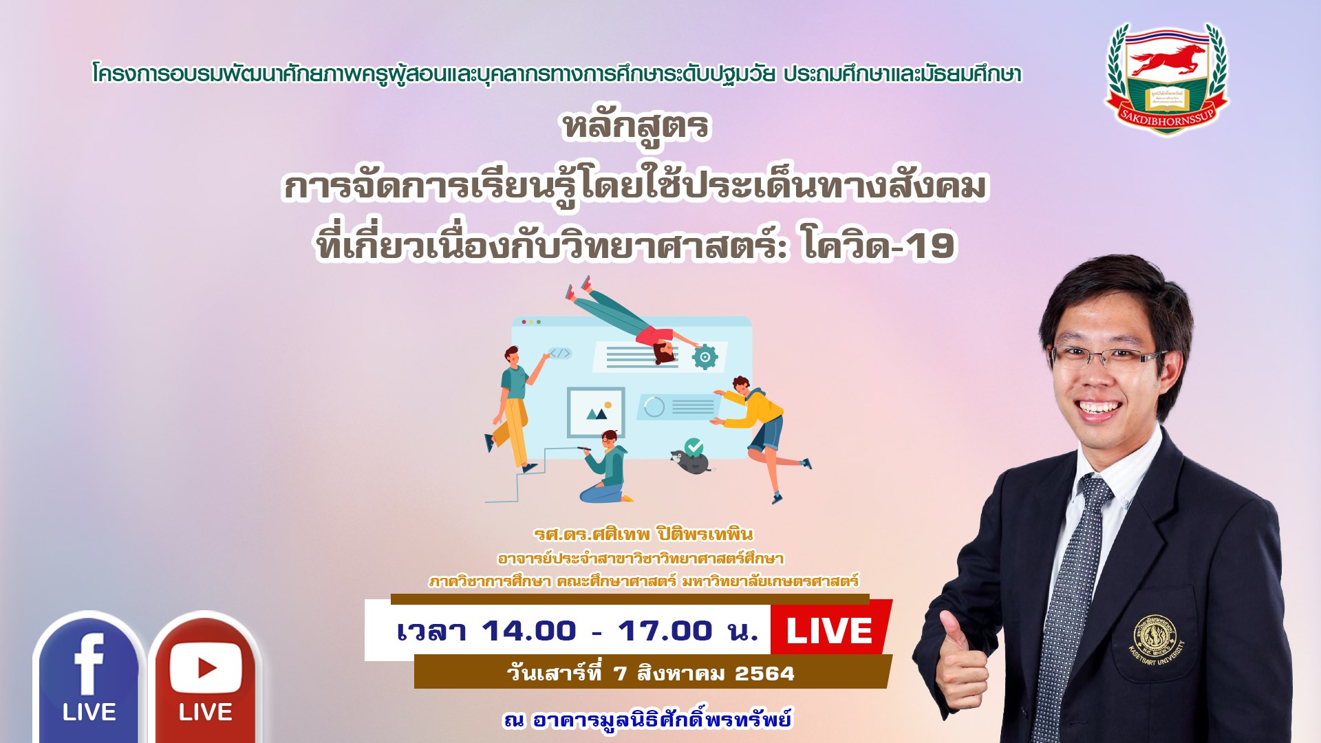 ประกาศรายชื่อผู้เข้าอบรมออนไลน์ : วันเสาร์ที่ 7 สิงหาคม 2564 เวลา 14.00-17.00 น. วิทยากร : รองศาสตราจารย์ดร.ศศิเทพ ปิติพรเทพิน