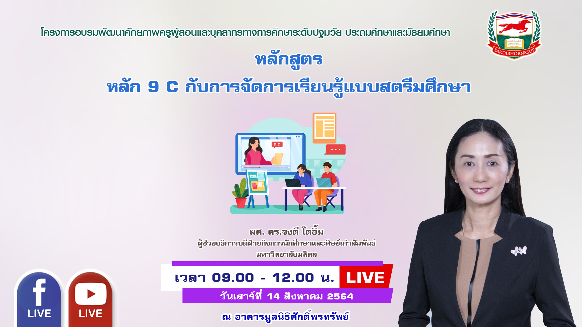 วันเสาร์ที่ 14 สิงหาคม 2564 เวลา 9.00-12.00 น.