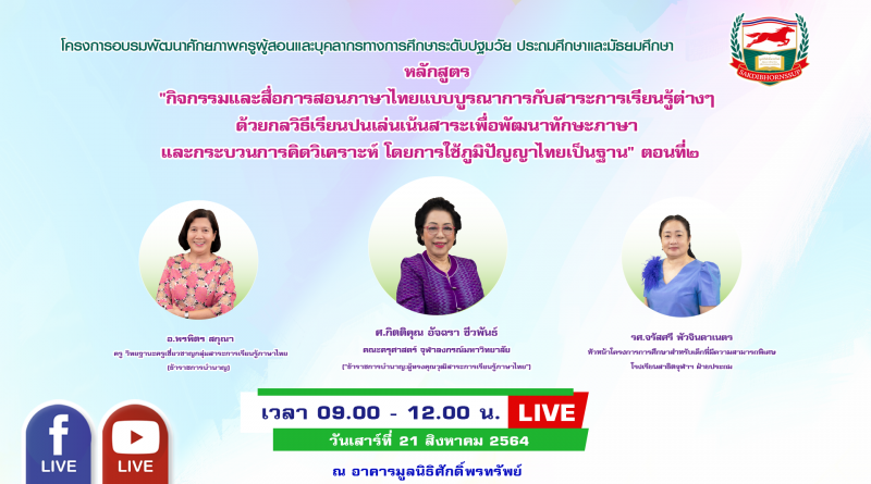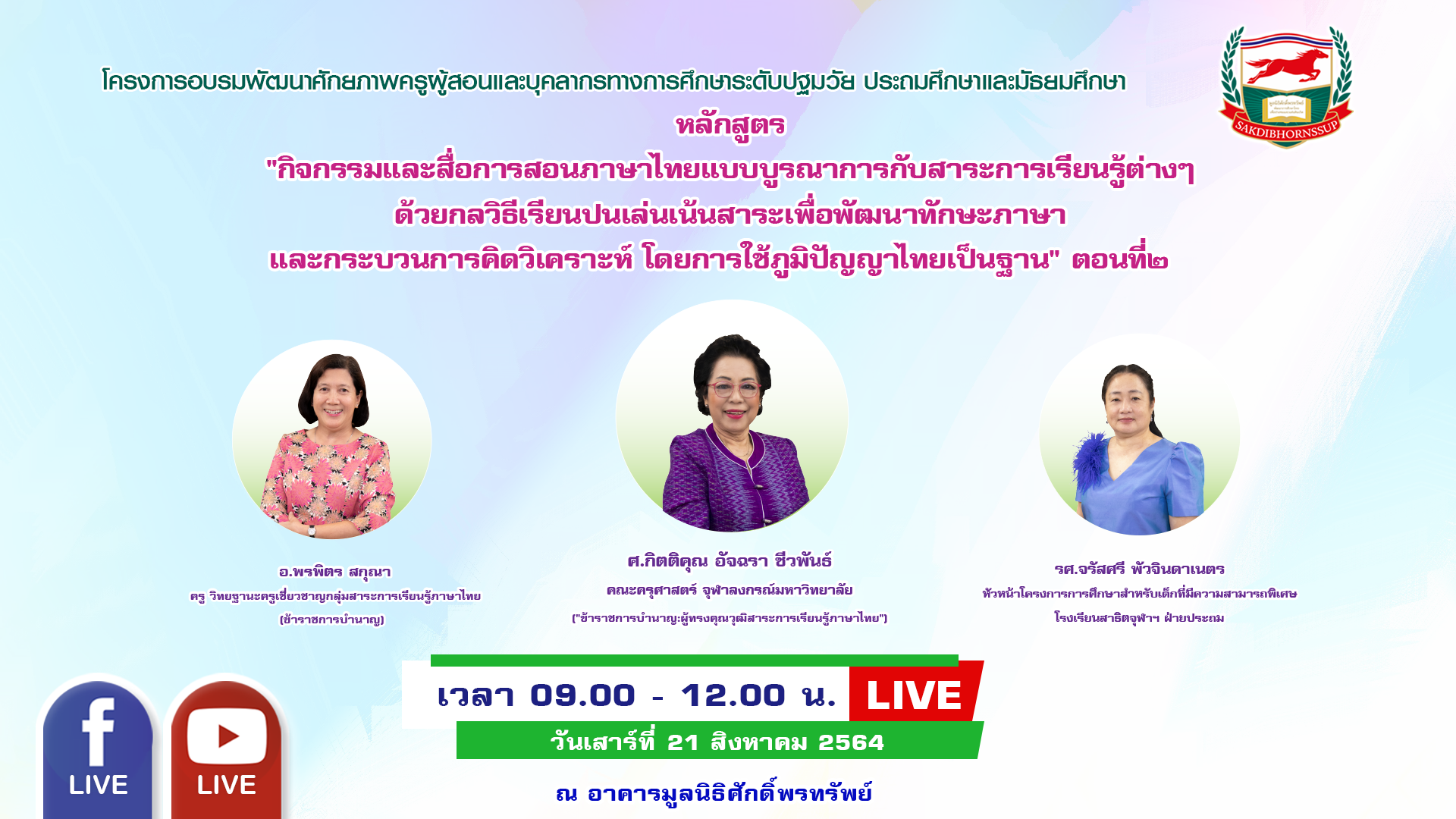 วันเสาร์ที่ 21 สิงหาคม 2564 เวลา 9.00-12.00 น.