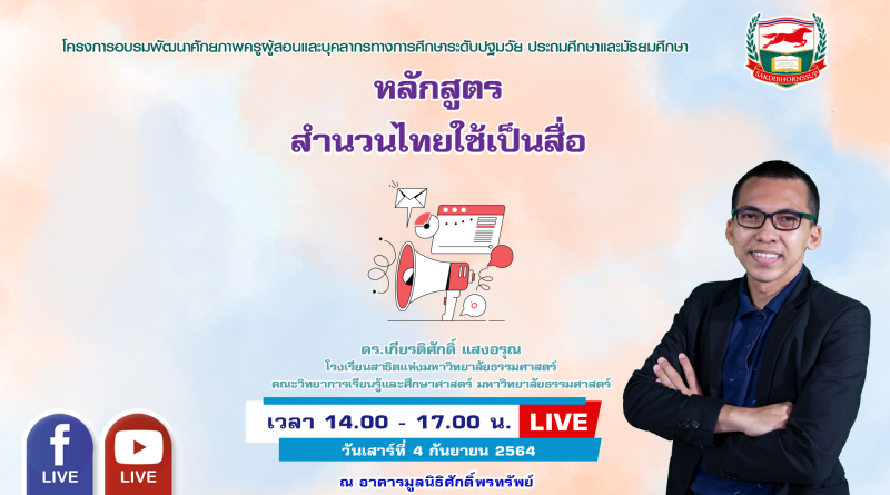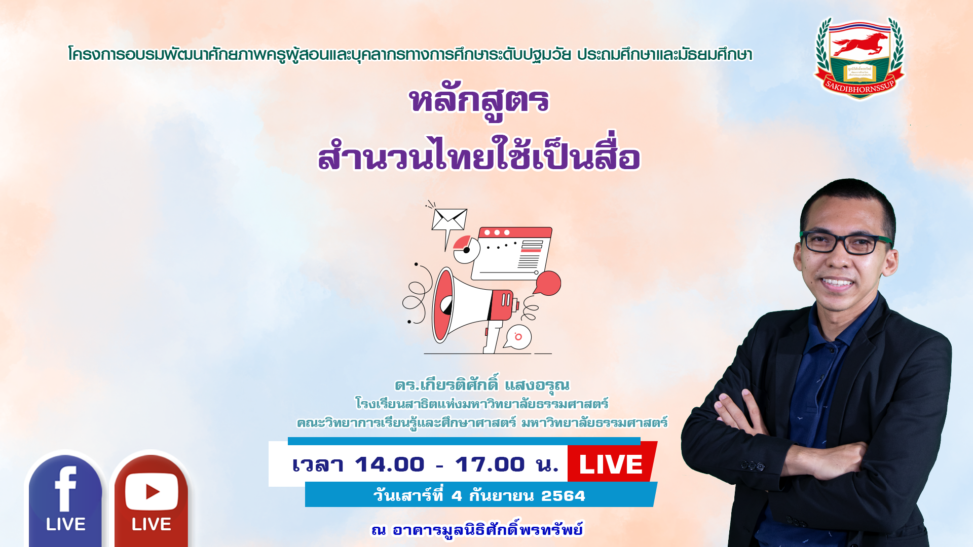 ประกาศรายชื่อผู้เข้าอบรมออนไลน์ : วันเสาร์ที่ 4 กันยายน 2564 เวลา 14.00-17.00 น. วิทยากร : อาจารย์ดร.เกียรติศักดิ์ แสงอรุณ