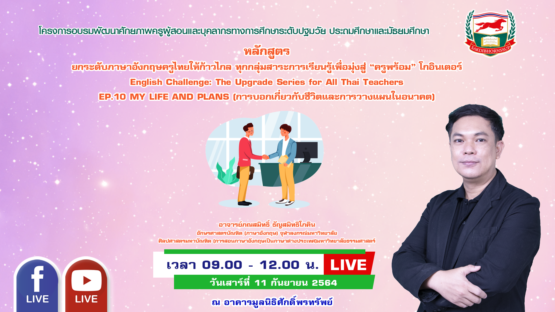 : ยกระดับภาษาอังกฤษครูไทยให้ก้าวไกลทุกกลุ่มสาระการเรียนรู้เพื่อมุ่งสู่ “ครูพร้อม” โกอินเตอร์English Challenge: The Upgrade Series for All Thai Teachers EP.10 MY LIFE AND PLANS (การบอกเกี่ยวกับชีวิตและการวางแผนในอนาคต)