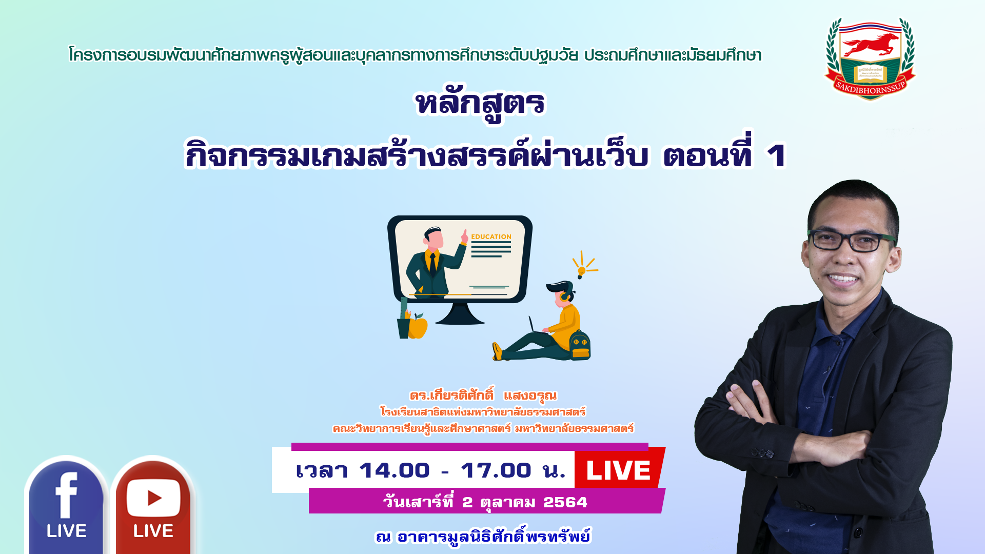 ประกาศรายชื่อผู้เข้าอบรมออนไลน์ : วันเสาร์ที่ 2 ตุลาคม 2564 เวลา 14.00-17.00 น. วิทยากร : อาจารย์ดร.เกียรติศักดิ์ แสงอรุณ
