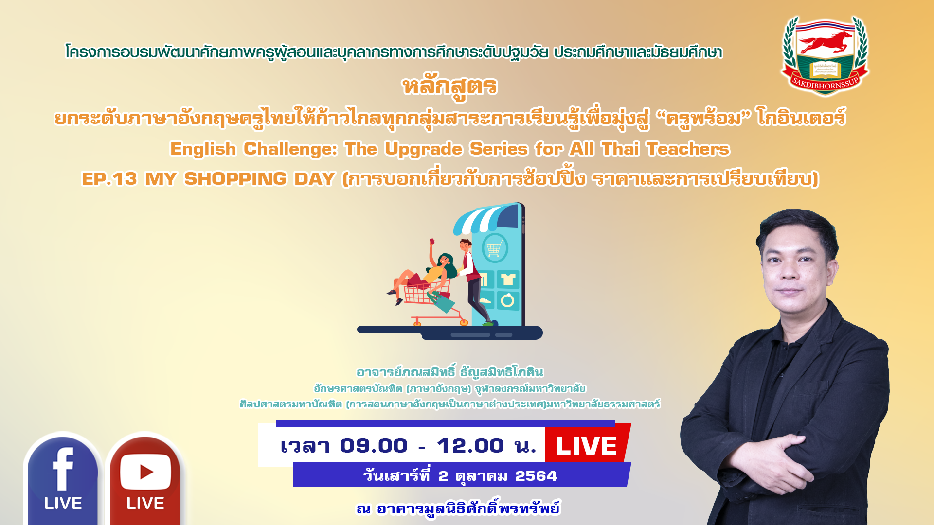 : ยกระดับภาษาอังกฤษครูไทยให้ก้าวไกลทุกกลุ่มสาระการเรียนรู้เพื่อมุ่งสู่ “ครูพร้อม” โกอินเตอร์ English Challenge: The Upgrade Series for All Thai Teachers EP.13 MY SHOPPING DAY (การบอกเกี่ยวกับการช้อปปิ้ง ราคาและการเปรียบเทียบ)