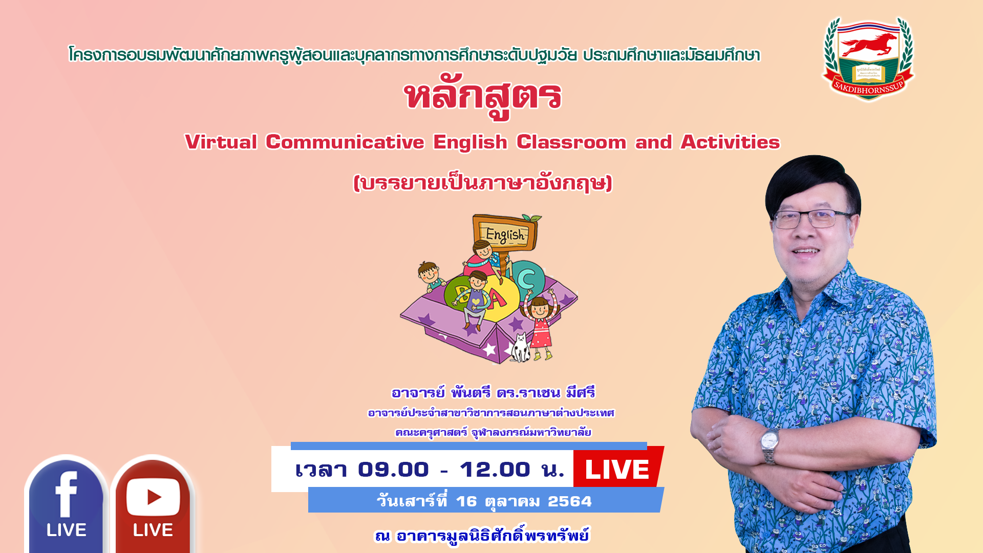 วันเสาร์ที่ 16 ตุลาคม เวลา 09.00-12.00 น.