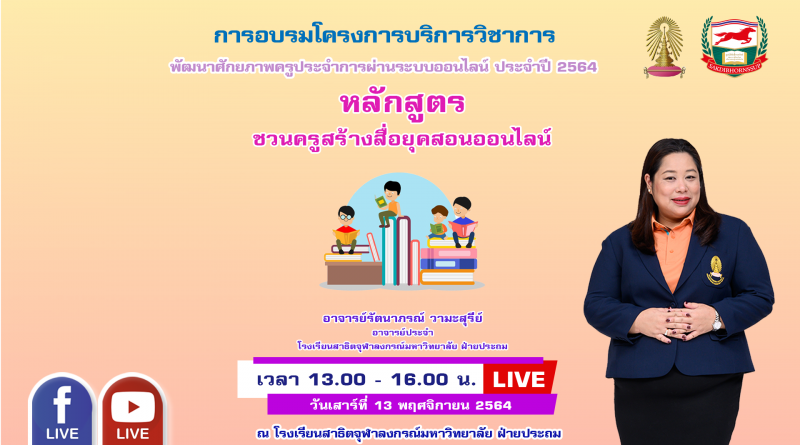 ประกาศรายชื่อผู้เข้าอบรมออนไลน์ : วันเสาร์ที่ 13 พฤศจิกายน 2564 เวลา 13.00-16.00 น. วิทยากร : อาจารย์รัตนาภรณ์ วามะสุรีย์