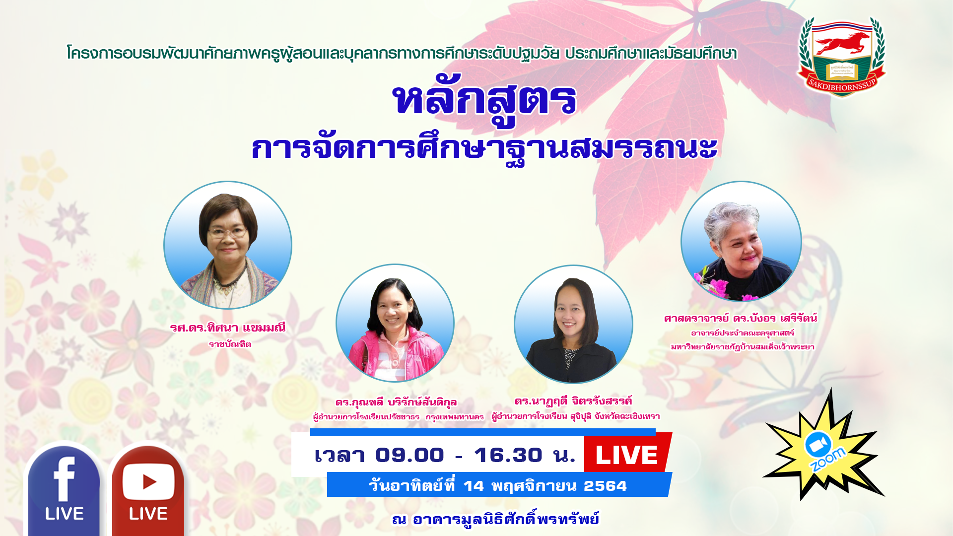 วันอาทิตย์ที่ 14 พฤศจิกายน 2564 เวลา 09.00-16.30 น