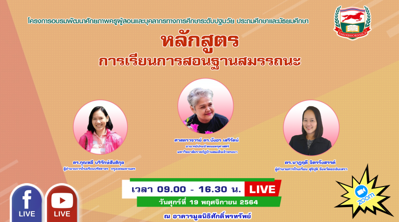 การจัดการศึกษาฐานสมรรถนะ (สำหรับครู อาจารย์ท่านอื่นๆที่สนใจเข้าร่วมอบรมในครั้งนี้สามารถเข้ามาร่วมเรียนรู้ได้ตลอดหลักสูตรทั้ง 2 วัน ผ่าน facebook live ของมูลนิธิฯ หลักสูตรนี้จะไม่มีใบรับรองการเข้ารับการอบรมให้ เนื่องจากหลักสูตรนี้เป็นหลักสูตรเฉพาะ)