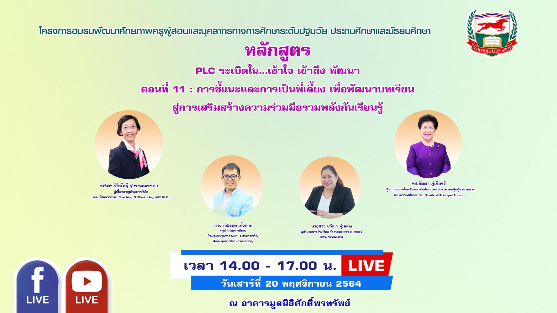วันเสาร์ที่ 20 พฤศจิกายน 2564 เวลา 14.00-17.00 น