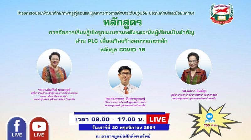 การจัดการเรียนรู้เชิงรุกแบบรวมพลังและเน้นผู้เรียนเป็นสำคัญ ผ่าน PLC เพื่อเสริมสร้างสมรรถนะหลัก หลังยุค COVID 19 (ไม่มีหนังสือรับรอง)