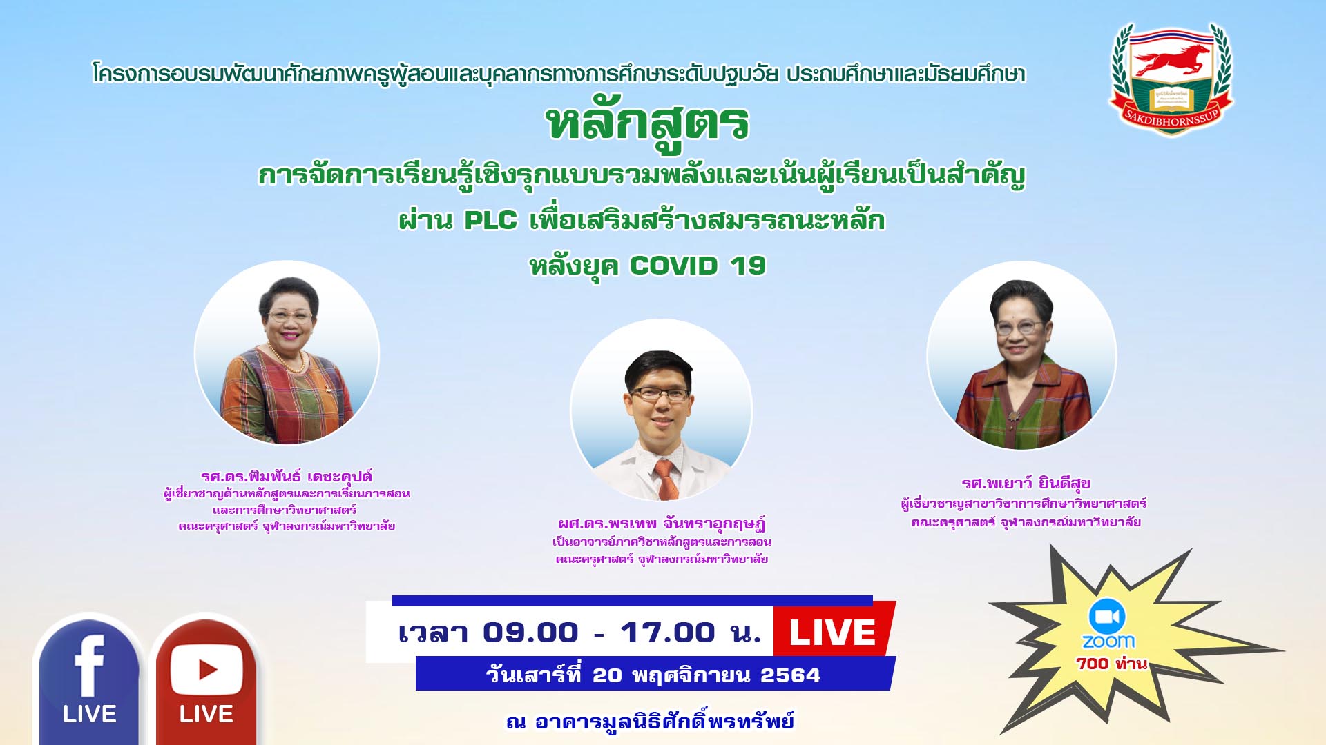 วันเสาร์ที่ 20 พฤศจิกายน 2564 เวลา 09.00-17.00 น