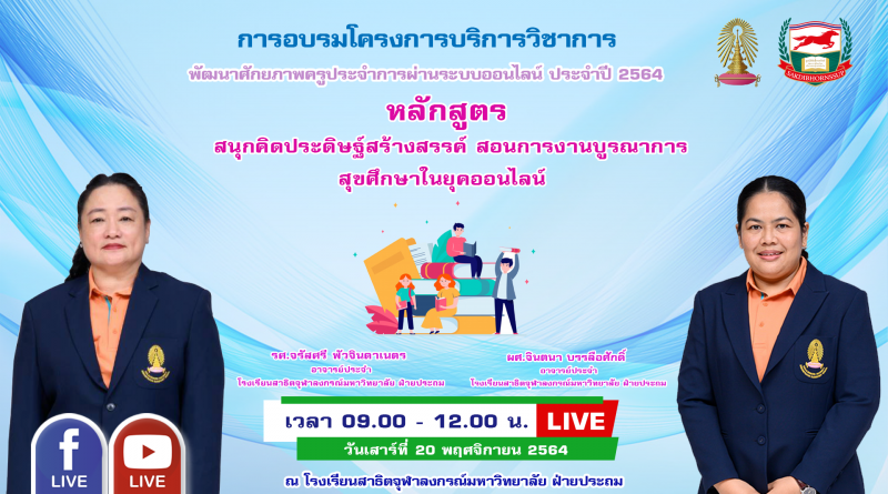 ประกาศรายชื่อผู้เข้าอบรมออนไลน์ : วันเสาร์ที่ 20 พฤศจิกายน 2564 เวลา 09.00-12.00 น. วิทยากร : รองศาสตราจารย์จรัสศรี พัวจินดาเนตร ผู้ช่วยศาสตราจารย์จินตนา บรรลือศักดิ์