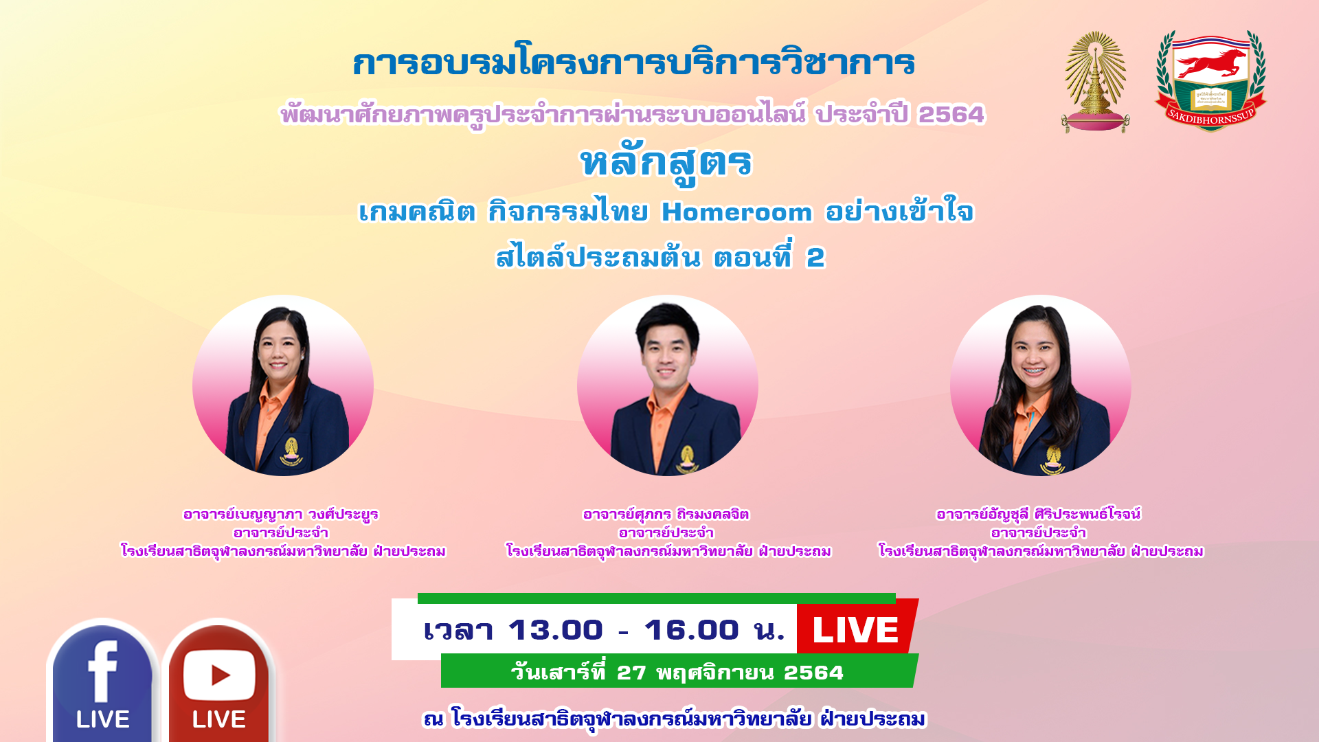 วันอาทิตย์ที่ 27 พฤศจิกายน 2564 เวลา 13.00-16.00 น