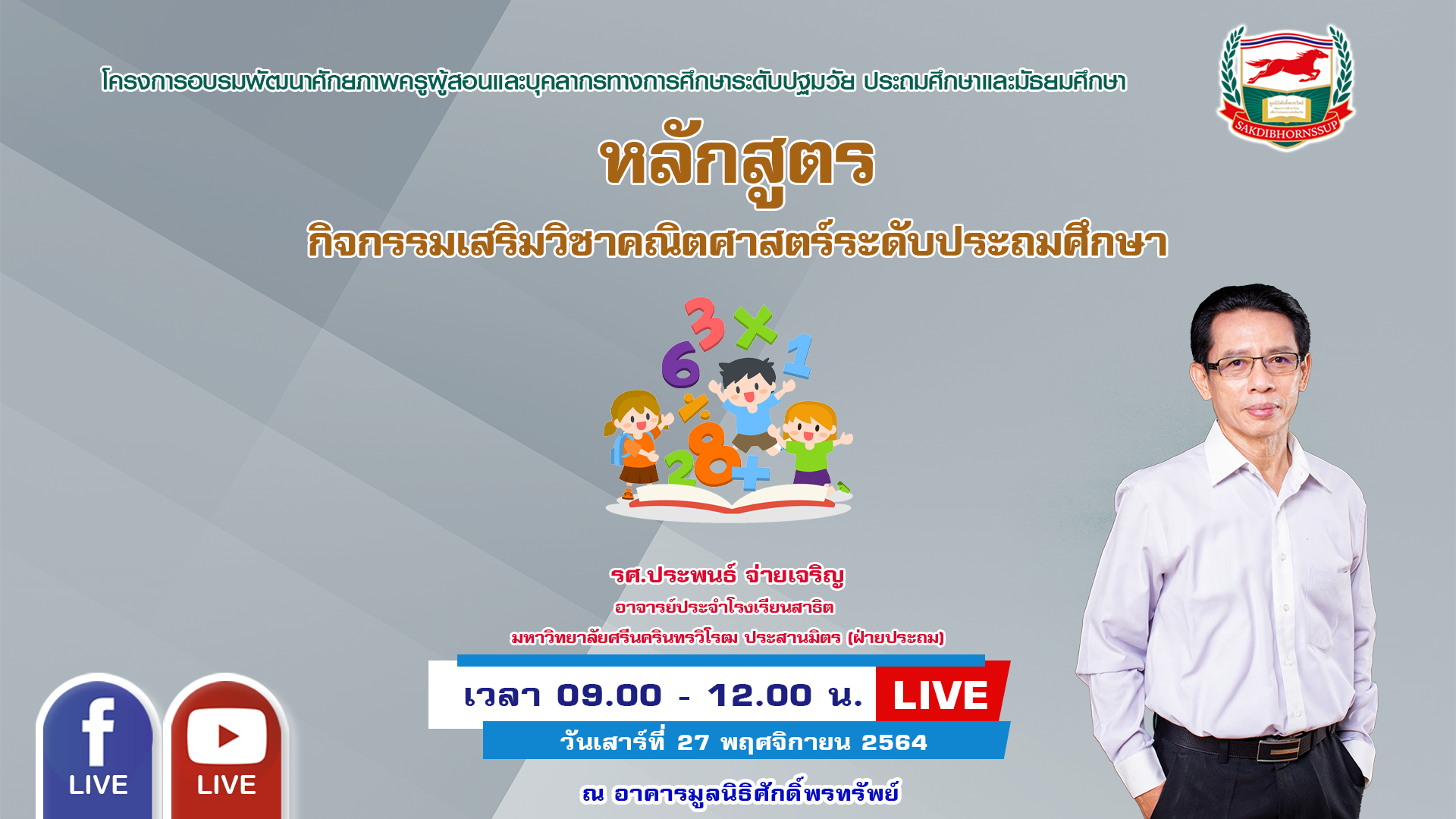 - ประกาศรายชื่อผู้เข้าอบรมออนไลน์ : วันเสาร์ที่ 27 พฤศจิกายน 2564 เวลา 09.00-12.00 น. วิทยากร : ผู้ช่วยศาสตราจารย์ดร.จงดี โตอิ้ม