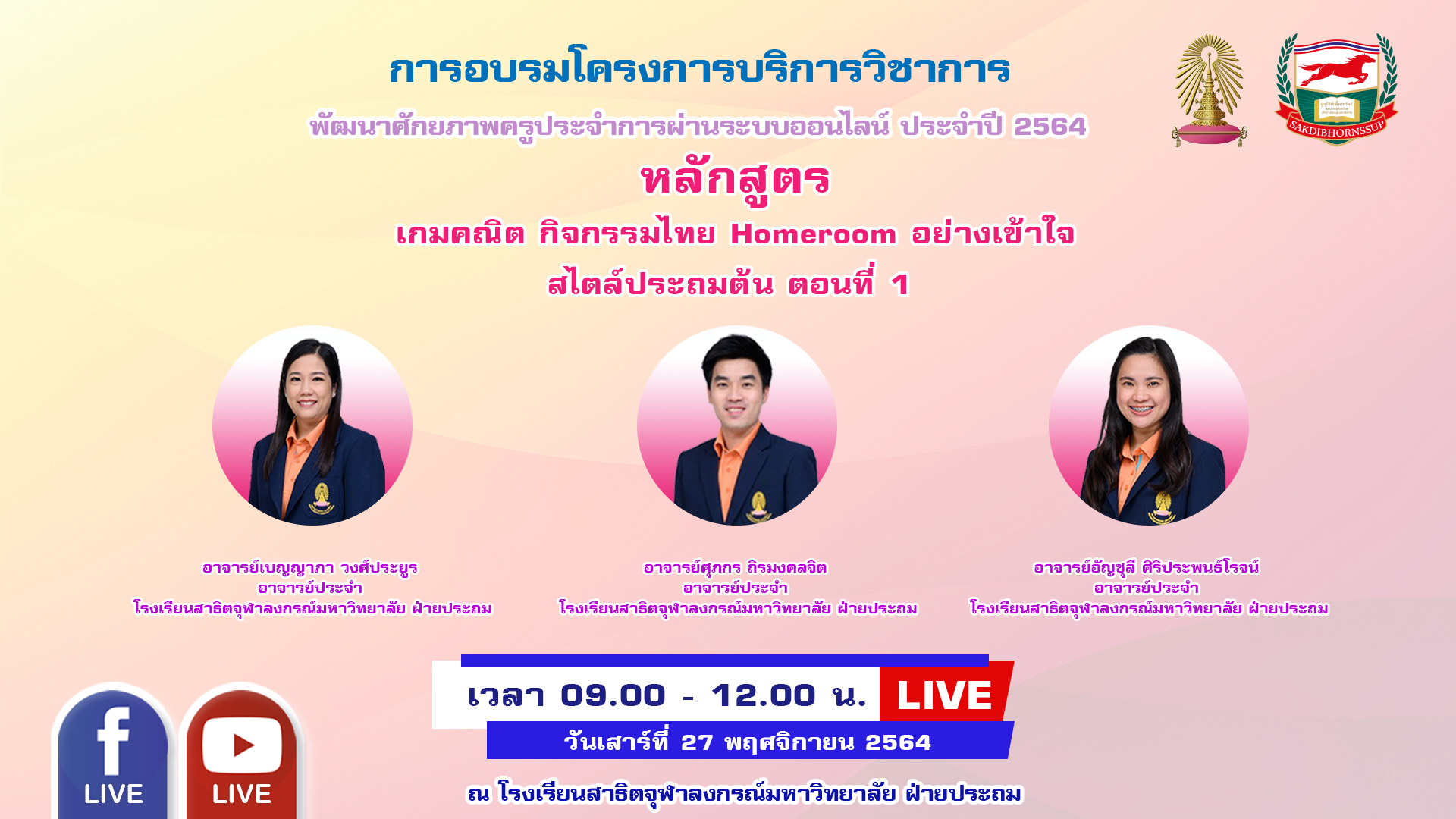 วันอาทิตย์ที่ 27 พฤศจิกายน  2564  เวลา 09.00-12.00