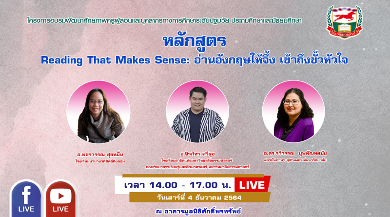 ประกาศรายชื่อผู้เข้าอบรมออนไลน์ : วันเสาร์ที่ 4 ธันวาคม 2564 เวลา 14.00-17.00 น. วิทยากร : อาจารย์จิรภัทร ศรีสุข , อาจารย์พชรวรรณ สุขหมื่น , อ.ดร.รวิวรรณ บุพพัณหสมัย