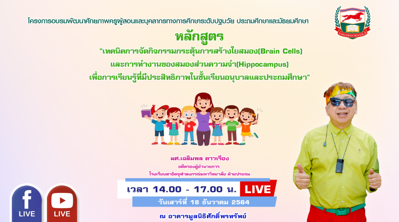 “เทคนิคการจัดกิจกรรมกระตุ้นการสร้างใยสมอง(Brain Cells)และการทำงานของสมองส่วนความจำ(Hippocampus)เพื่อการเรียนรู้ที่มีประสิทธิภาพในชั้นเรียนอนุบาลและประถมศึกษา”