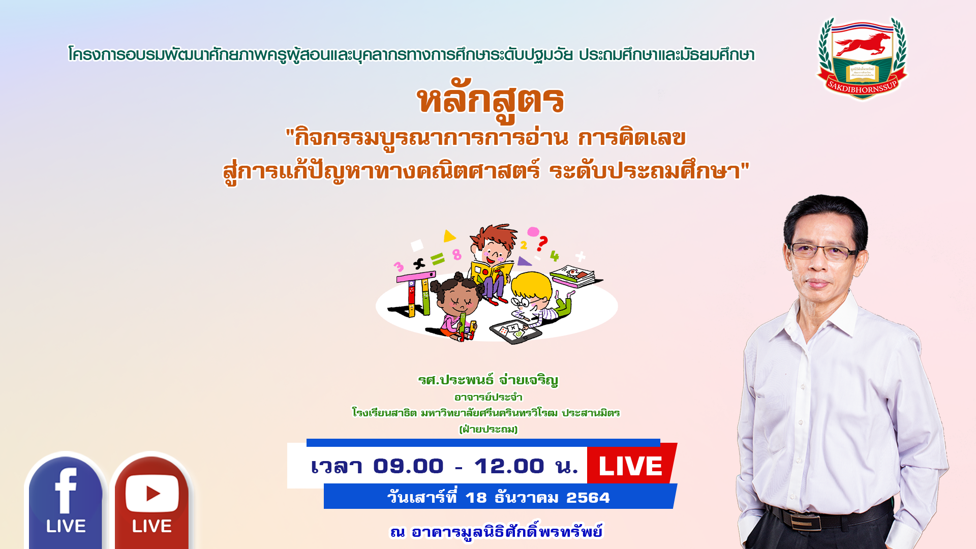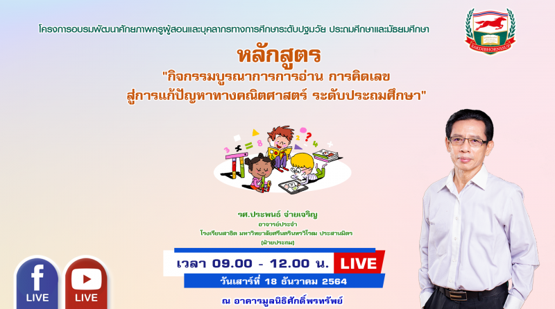 ประกาศรายชื่อผู้เข้าอบรมออนไลน์ : วันเสาร์ที่ 18 ธันวาคม 2564 เวลา 09.00-12.00 น. วิทยากร : รองศาสตราจารย์ประพนธ์ จ่ายเจริญ