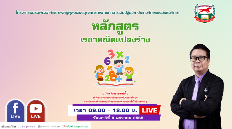 วันเสาร์ที่ 8 มกราคม 2565 เวลา 09.00-12.00 น.
