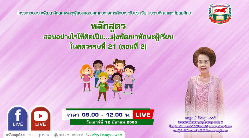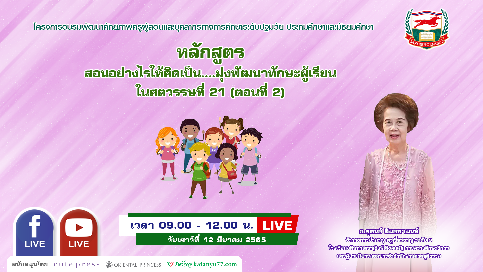 ประกาศรายชื่อผู้เข้าอบรมออนไลน์ : วันเสาร์ที่ 12 มีนาคม 2565 เวลา 09.00-12.00 น. วิทยากร : อ.สุคนธ์ สินธพานนท์