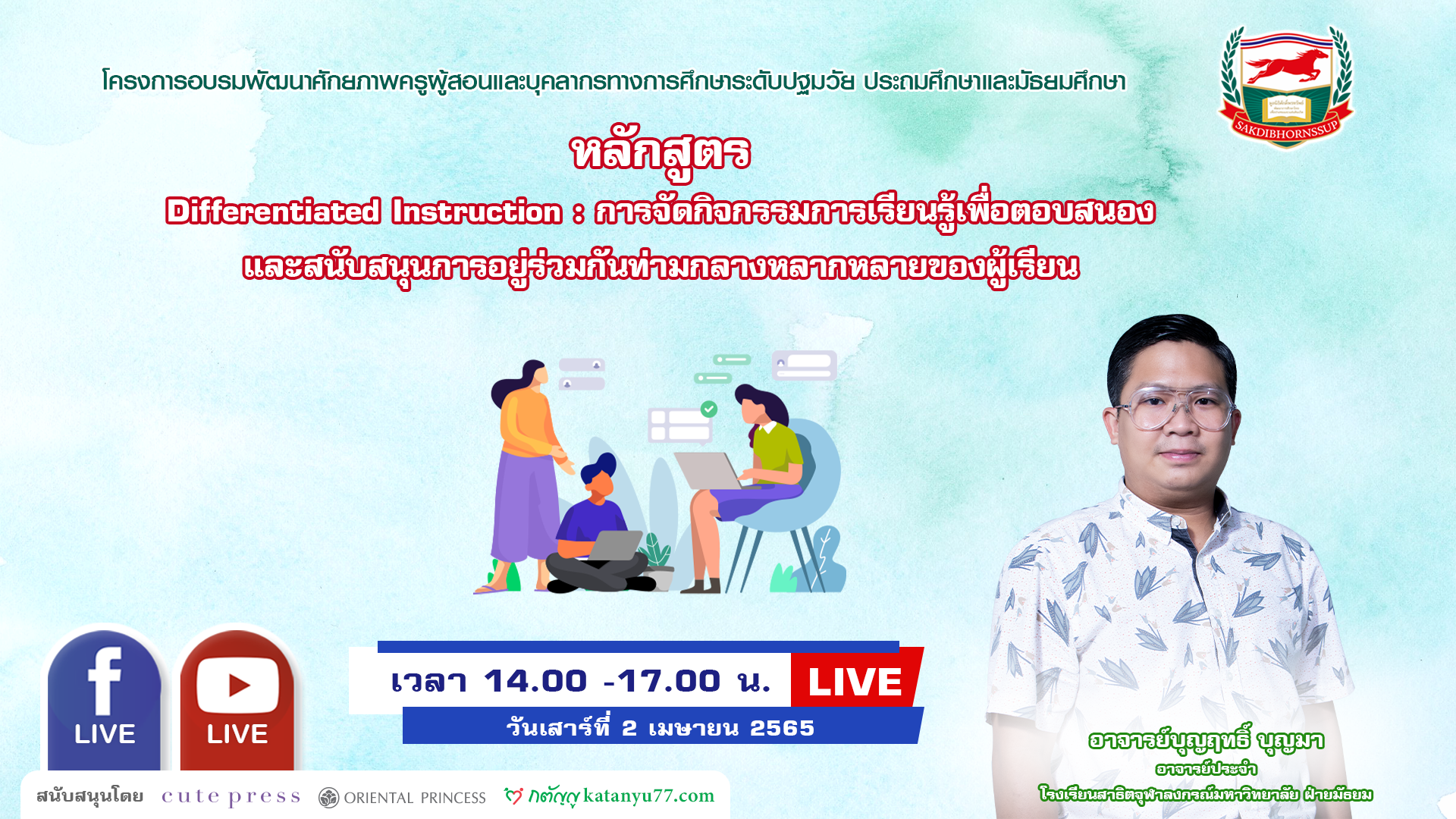 ประกาศรายชื่อผู้เข้าอบรมออนไลน์ : วันเสาร์ที่ 2 เมษายน 2565 เวลา 14.00-17.00 น. วิทยากร : อาจารย์บุญฤทธิ์ บุญมา