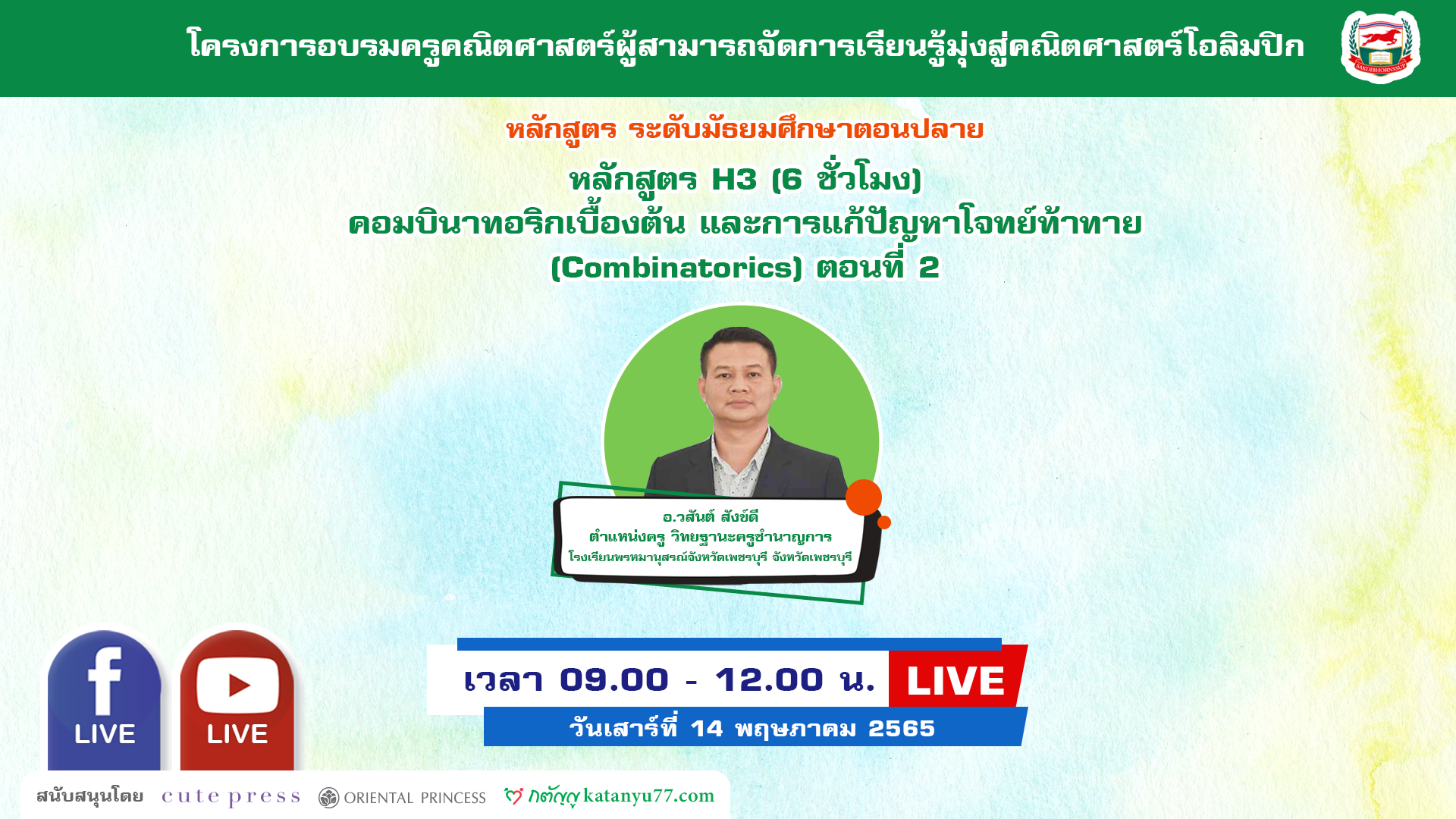 วันเสาร์ที่ 14 พฤษภาคม 2565 เวลา 09.00-12.00 น.