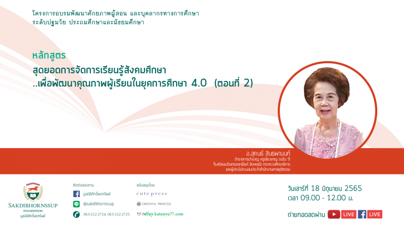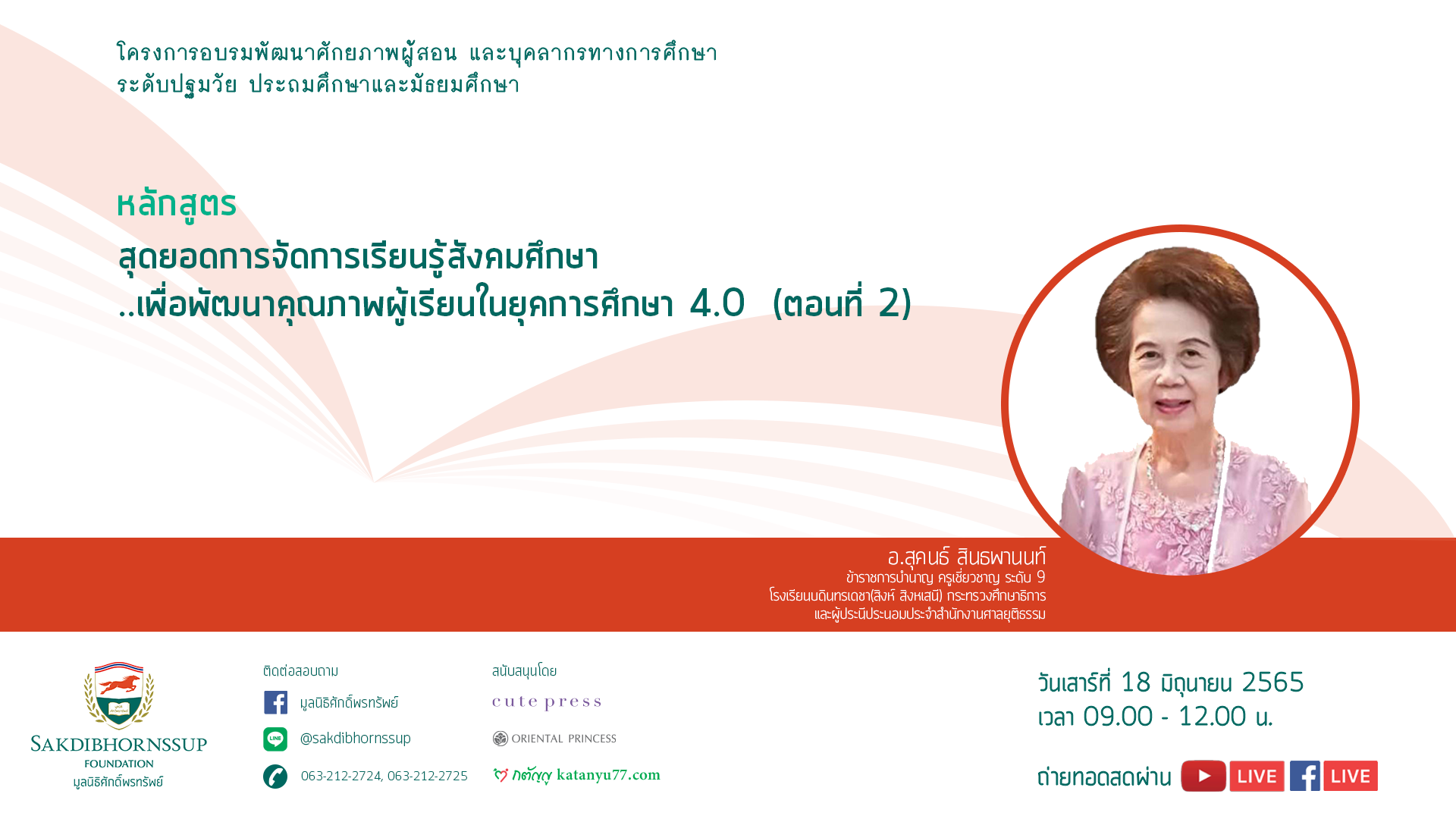 ประกาศรายชื่อผู้เข้าอบรมออนไลน์ : วันเสาร์ที่ 18 มิถุนายน 2565 เวลา 09.00-12.00 น. วิทยากร : อ.สุคนธ์ สินธพานนท์