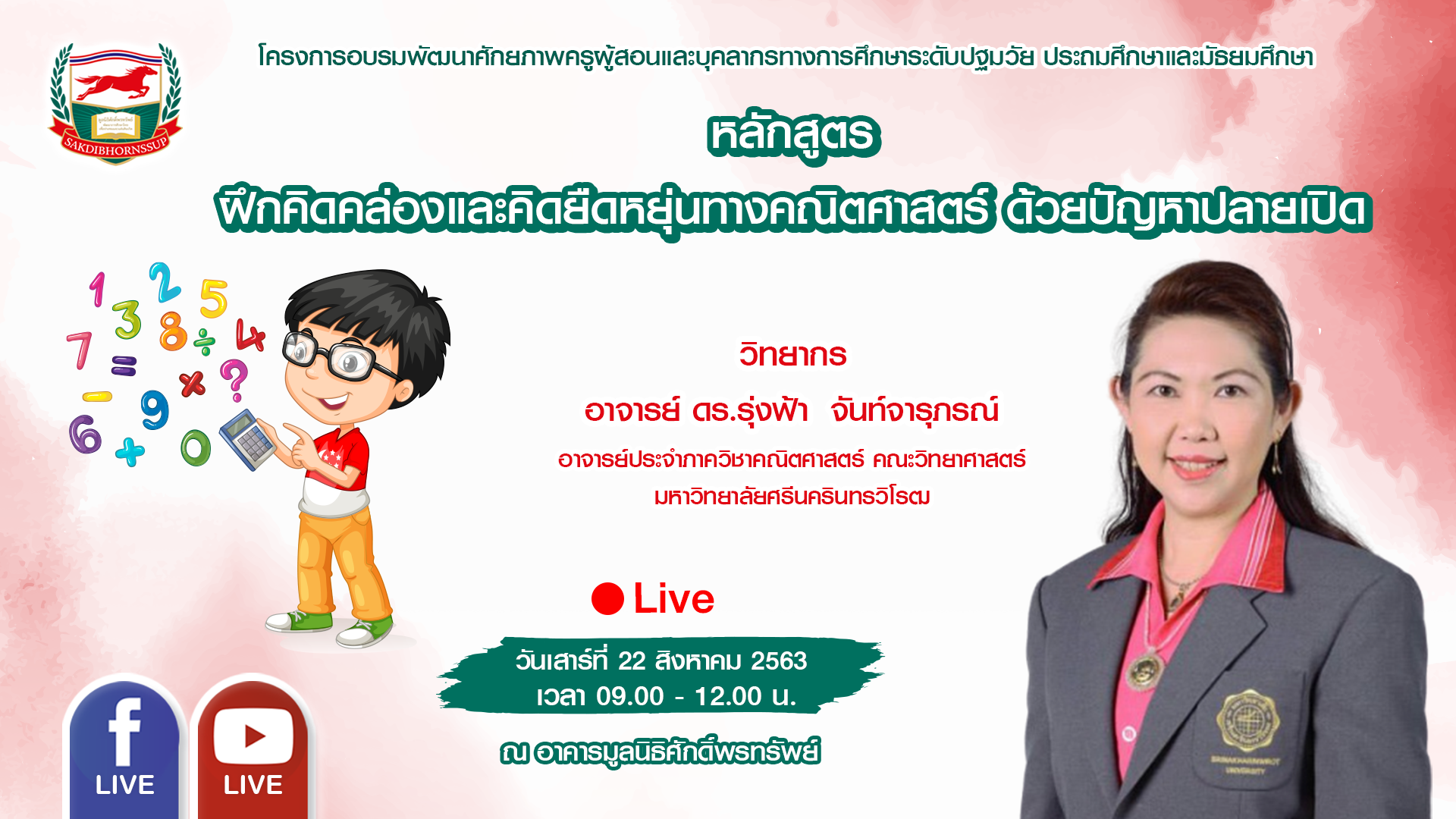 วันเสาร์ที่ 22 สิงหาคม 2563 เวลา 09.00-12.00 น.