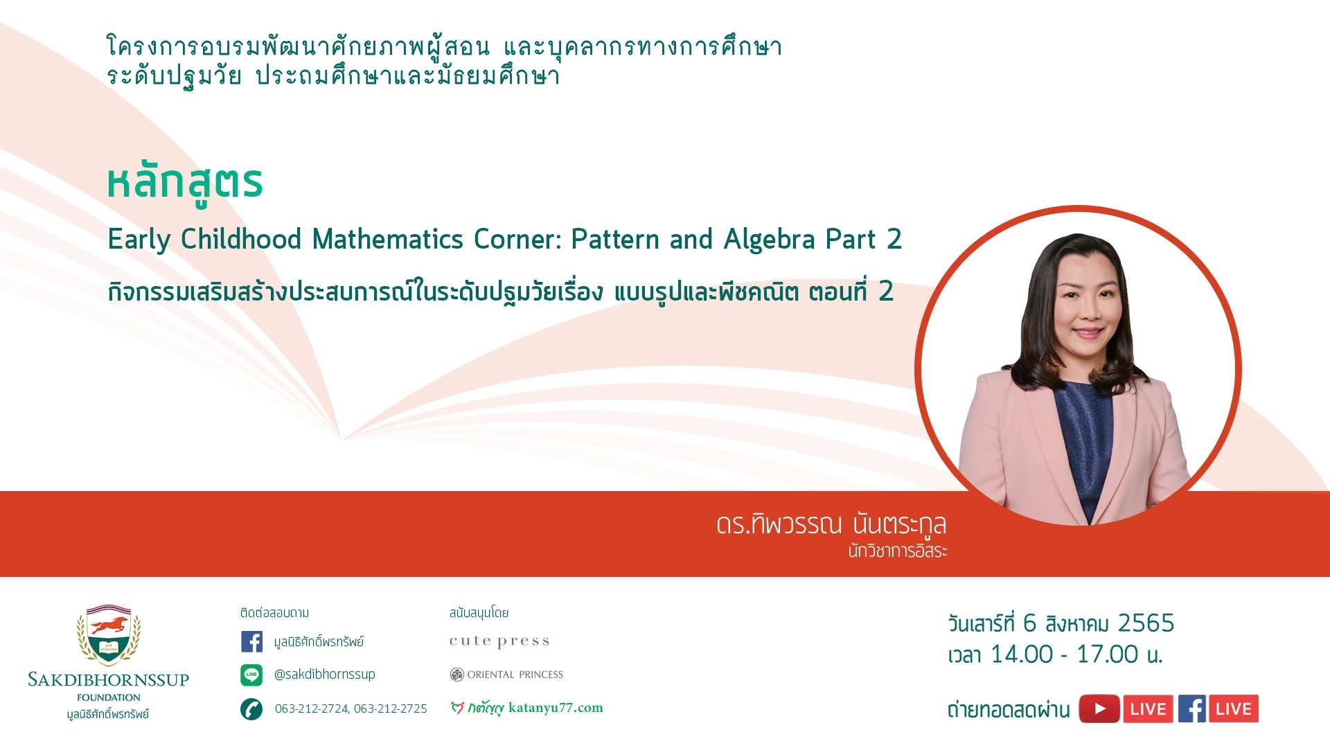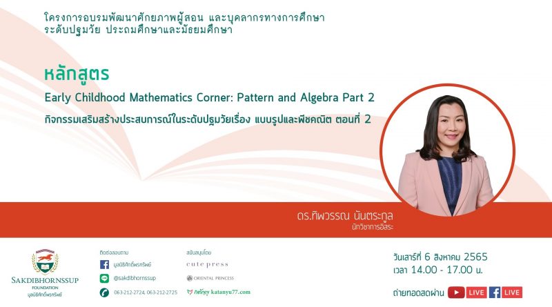 หลักสูตร : Early Childhood Mathematics Corner: Pattern and Algebra Part 2 กิจกรรมเสริมสร้างประสบการณ์ในระดับปฐมวัยเรื่อง แบบรูปและพีชคณิต ตอนที่ 2