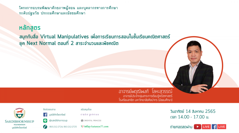 หลักสูตร : สนุกกับสื่อ Virtual Manipulatives เพื่อการเรียนการสอนในชั้นเรียนคณิตศาสตร์ยุค Next Normal ตอนที่ 2 สาระจำนวนและพีชคณิต