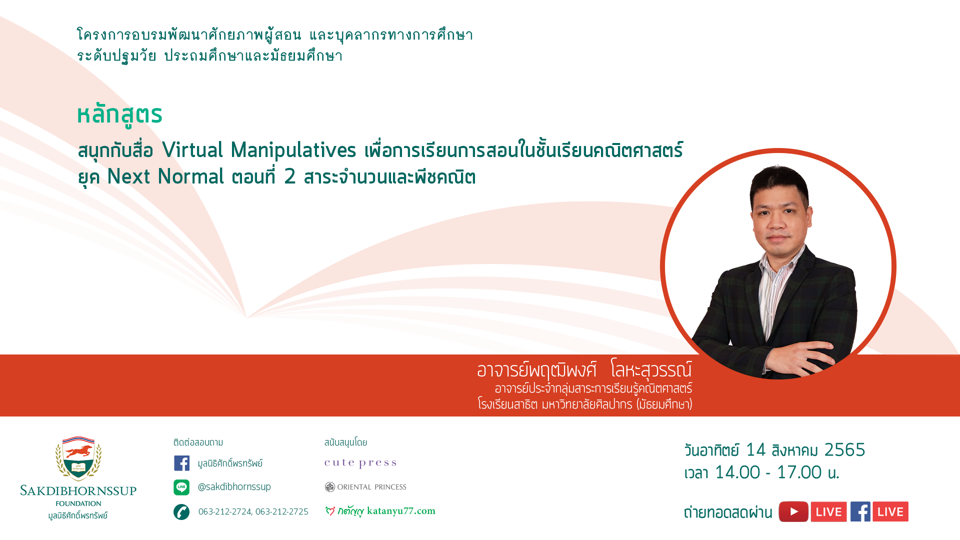 ประกาศรายชื่อผู้เข้าอบรมออนไลน์ : วันเสาร์ที่ 14 สิงหาคม 2565 เวลา 14.00-17.00 น. วิทยากร : อาจารย์พฤฒิพงศ์ โลหะสุวรรณ์