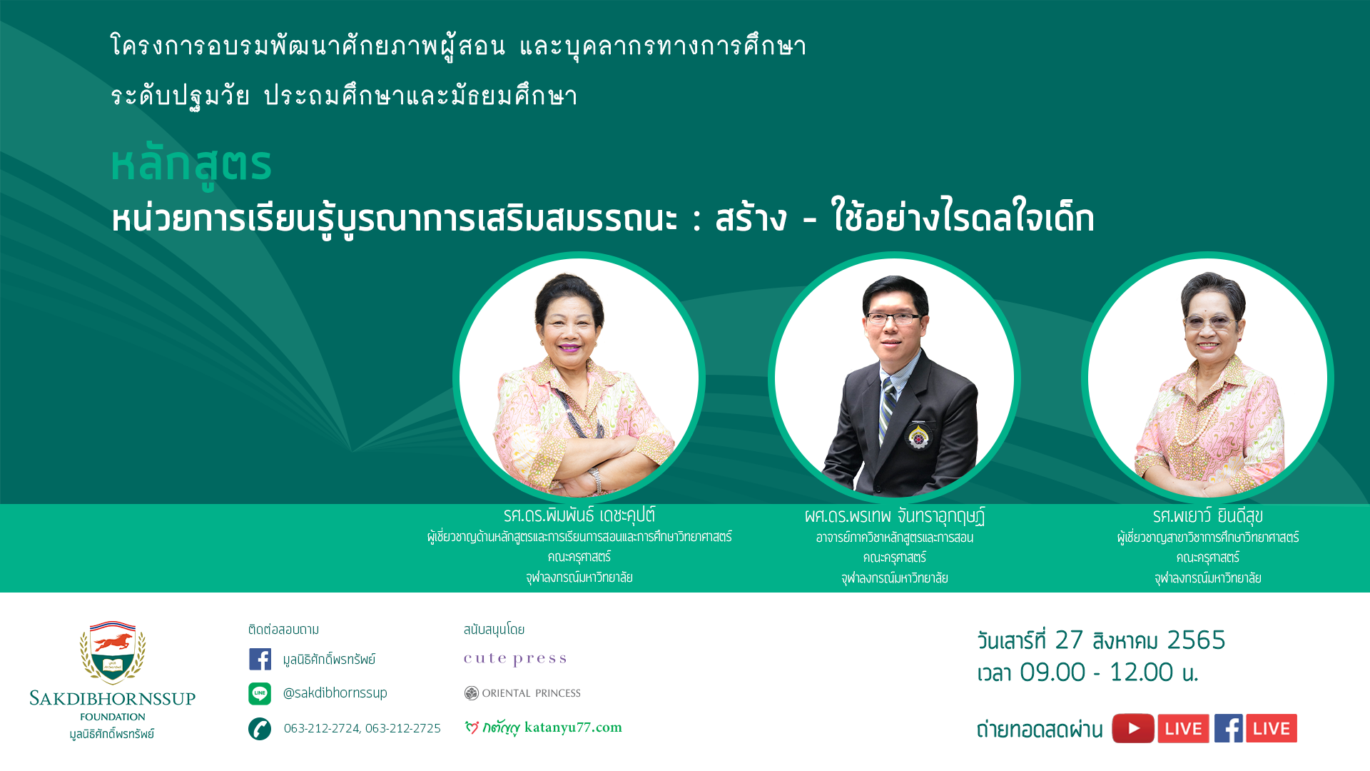 ประกาศรายชื่อผู้เข้าอบรมออนไลน์ : วันเสาร์ที่ 27 สิงหาคม 2565 เวลา 9.00-12.00 น. วิทยากร : รศ. ดร.พิมพันธ์ เดชะคุปต์, รศ.พเยาว์ ยินดีสุข, ผศ.ดร.พรเทพ จันทราอุกฤษฏ์