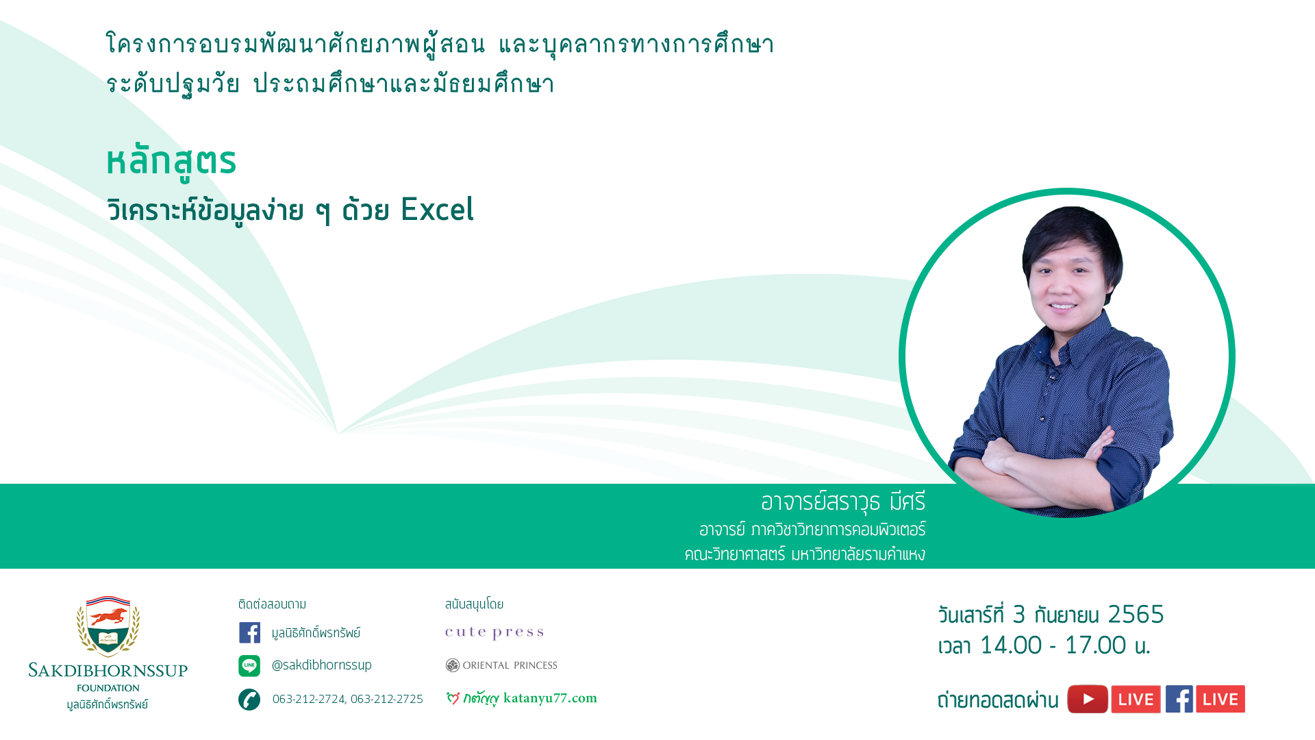 ประกาศรายชื่อผู้เข้าอบรมออนไลน์ : วันเสาร์ที่ 3 กันยายน 2565 เวลา 14.00 – 17.00 น. วิทยากร : อาจารย์สราวุธ มีศรี