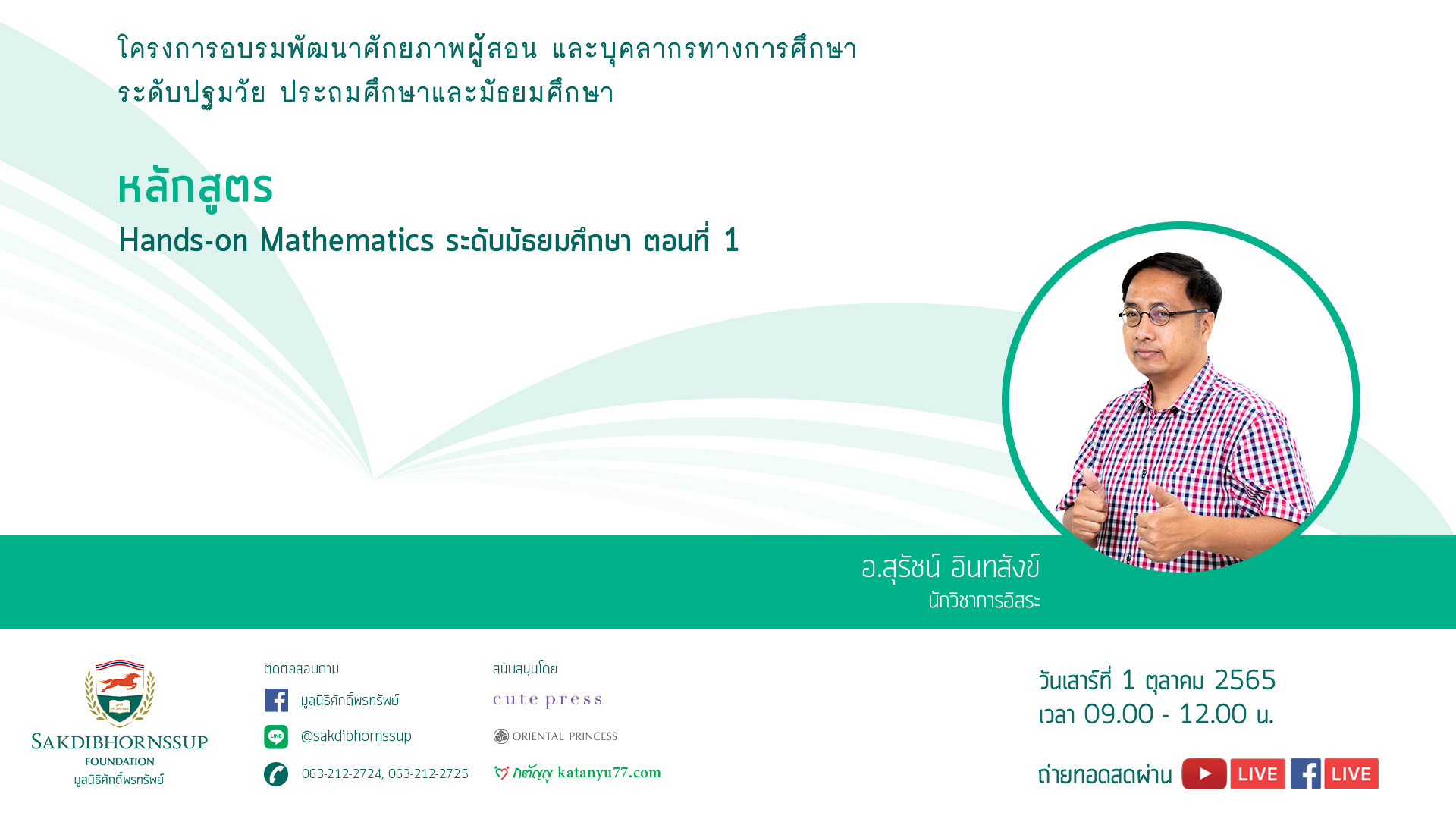 ประกาศรายชื่อผู้เข้าอบรมออนไลน์ : วันเสาร์ที่ 1 ตุลาคม 2565 เวลา 09.00 – 12.00 น. วิทยากร : อาจารย์สุรัชน์ อินทสังข์
