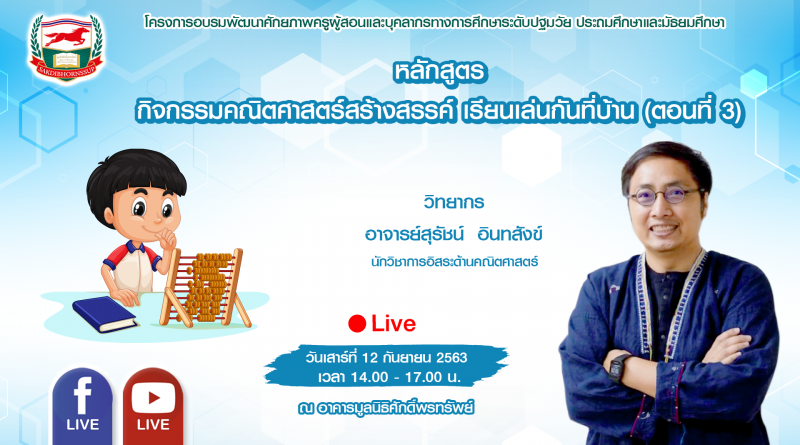 หลักสูตร : กิจกรรมคณิตศาสตร์สร้างสรรค์ เรียนเล่นกันที่บ้าน (ตอนที่ 3)
