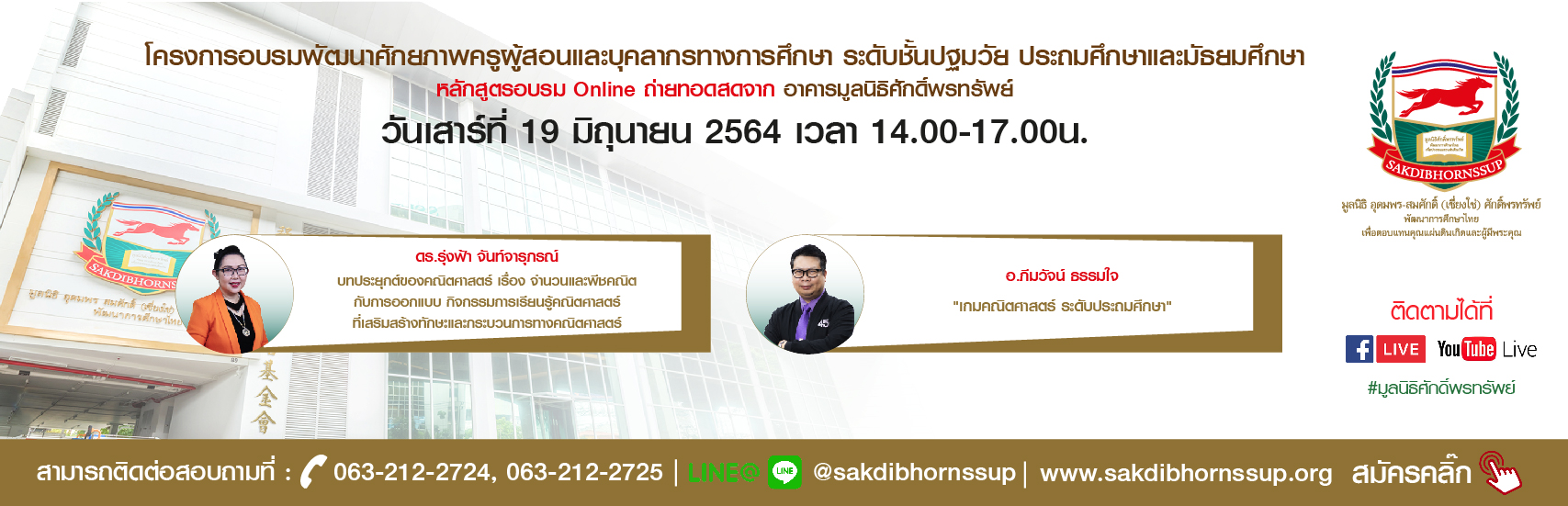 ประชาสัมพันธ์หลักสูตรวันที่ 19 มิถุนายน 2564