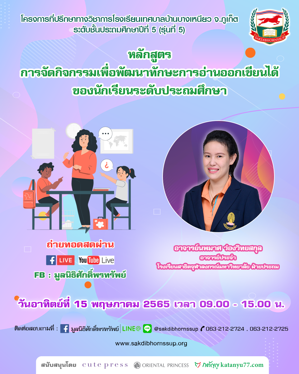 ข่าวประชาสัมพันธ์ ประชาสัมพันธ์หลักสูตรอบรมออนไลน์ วันเสาร์-อาทิตย์ ที่ 14-15 พฤษภาคม 2565 : May 5, 2022 kusol admin โครงการที่ปรึกษาทางวิชาการโรงเรียนเทศบาลบ้านบางเหนียว จังหวัดภูเก็ต รุ่นที่ 4