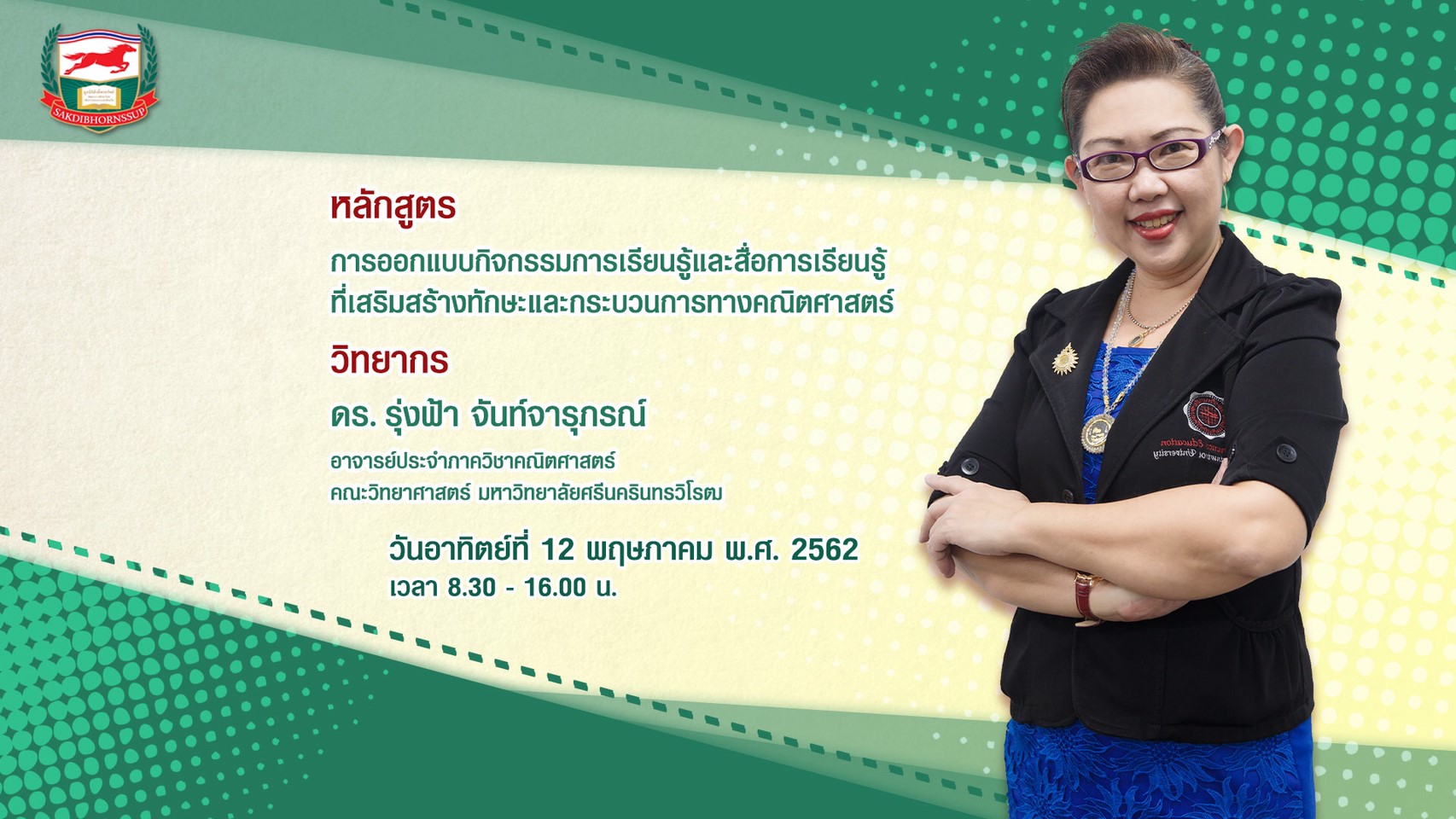 คลิปวิดีโอและภาพบรรยากาศการอบรม :การออกแบบกิจกรรมการเรียนรู้และสื่อการเรียนรู้ที่เสริมสร้างทักษะและกระบวนการทางคณิตศาสตร์ วันอาทิตย์ที่ 12 พฤษภาคม พ.ศ.2562