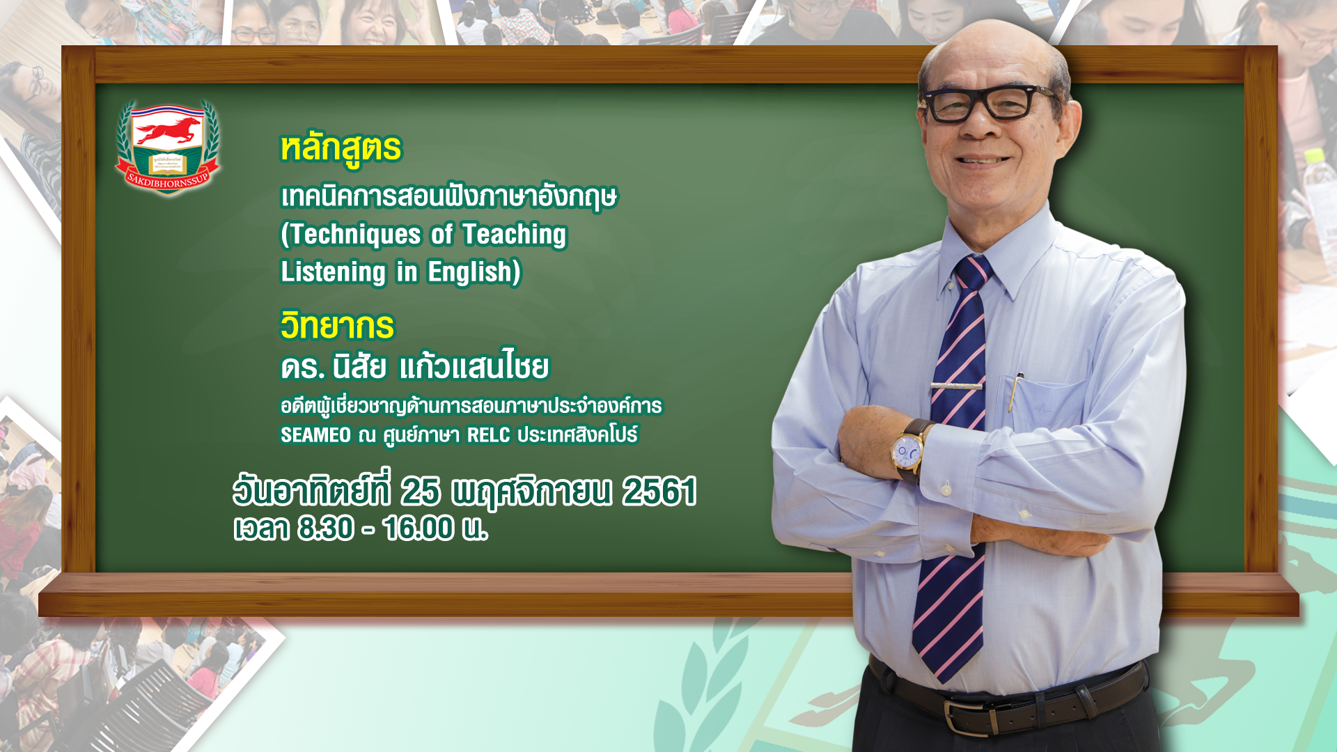 สกู๊ป และ ภาพบรรยากาศ หลักสูตร เทคนิคการสอนฟังภาษาอังกฤษ (Techniques Teaching Listening in English) วิทยากร ดร.นิสัย แก้วแสนไชย