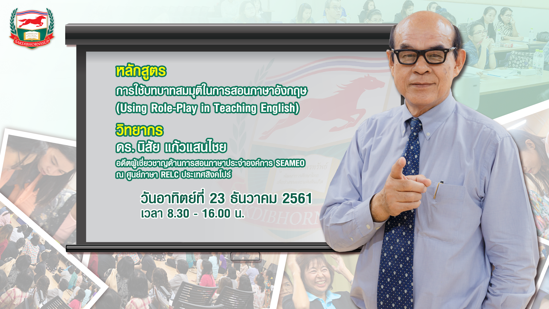 สกู๊ปและภาพบรรยากาศ หลักสูตร การใช้บทบาทสมมุติในการสอนภาษาอังกฤษ (Using Role-Play in Teaching English) วิทยากร ดร.นิสัย แก้วแสนไชย