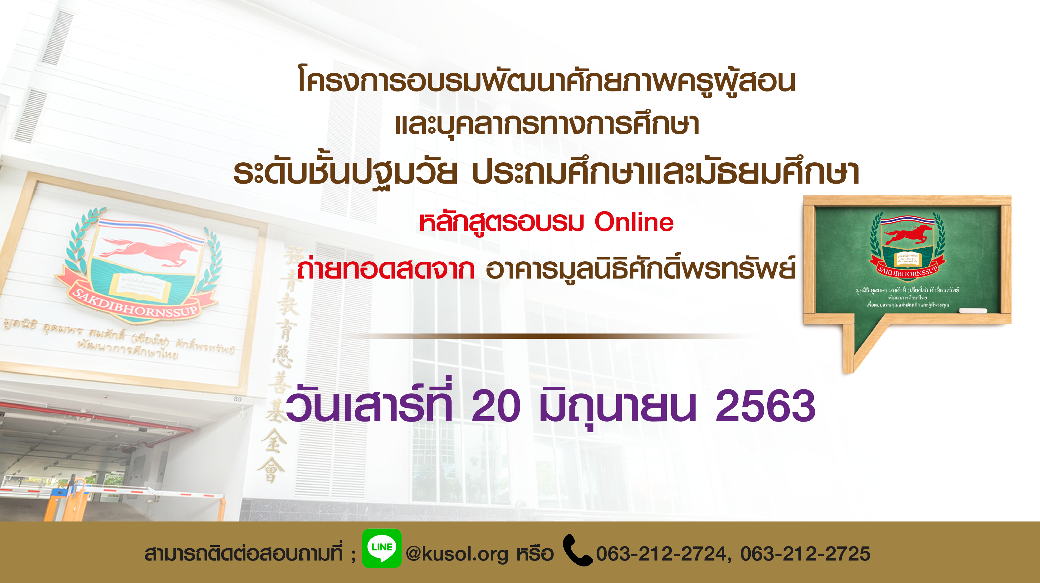 หลักสูตรอบรมออนไลน์ วันเสาร์ที่ 20 มิถุนายน 2563 : 4 หลักสูตร
