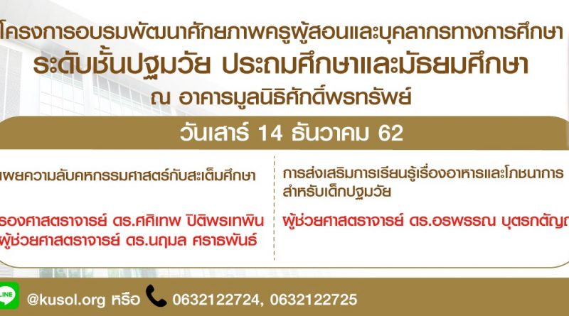 หลักสูตรอบรม วันเสาร์ที่ 14 ธันวาคม พ.ศ.2562